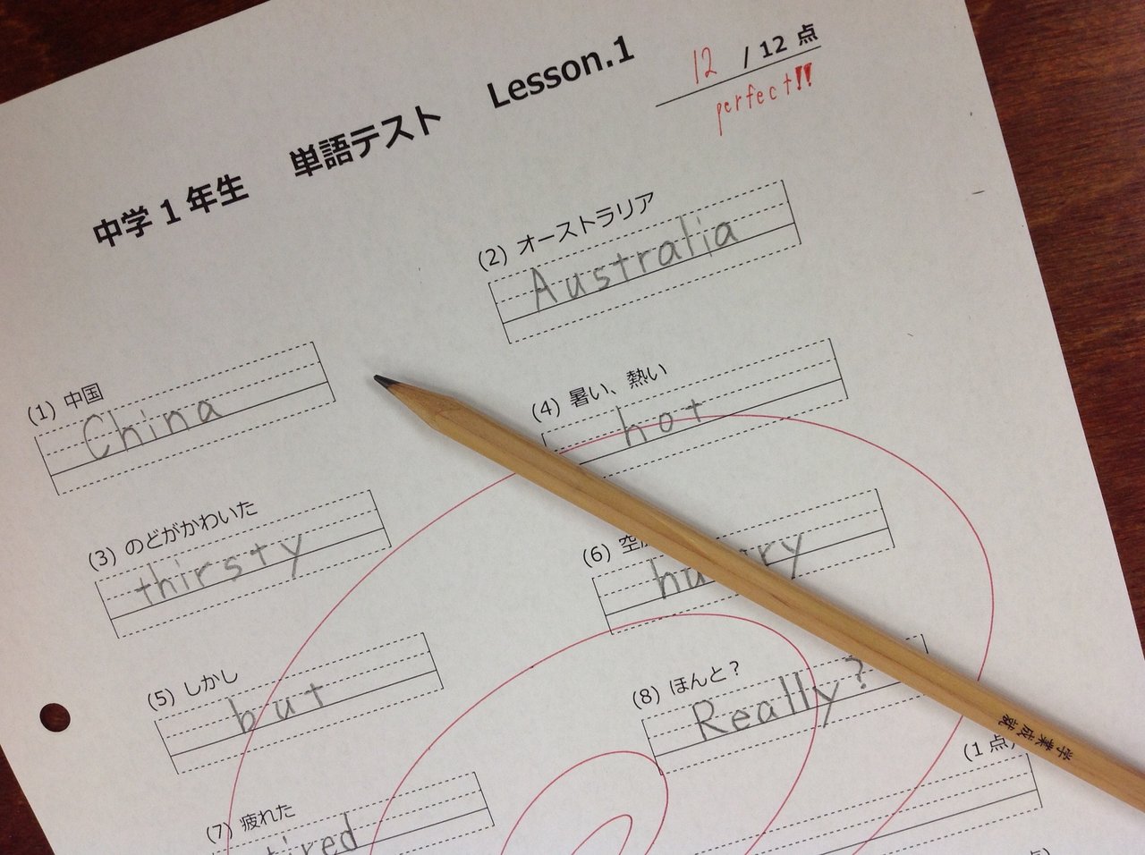 今日は中学1年生の授業があり、単語テストを実施しました!